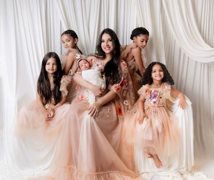 En las imágenes posa con su recién nacida Vail y alrededor de ellas Alía, Ava, Nova, Mila sus demás hijas. También posó junto a su primogénito Ean.