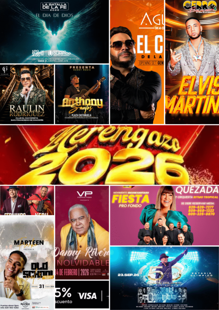 En esta lista te presentamos los conciertos que darán entrada a este 2026 con una variedad de cantantes memorables que van desde Anthony Santos hasta Milly Quezada y Fernando Villalona y muchos más.