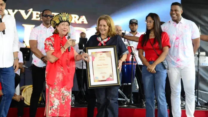 - Como parte del homenaje, Rosa hizo entrega de un reconocimiento póstumo al legendario merenguero en nombre de la fundación y del Barrio Chino, el cual fue recibido por su esposa, Josefina Flores de Ventura “Fifa”, sus hijos Ana Yahaira y Jandy, en un momento cargado de emotividad y gratitud.