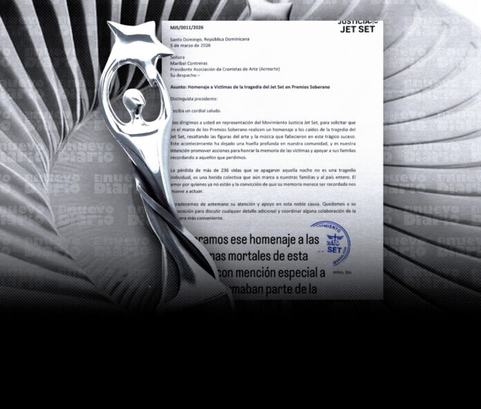 El Movimiento Justicia Jet Set informó que envió una comunicación a la Asociación de Cronistas de Arte (Acroarte) solicitando que durante la próxima entrega de los Premios Soberano se realice un homenaje a las víctimas mortales de la tragedia ocurrida en el centro de diversión Jet Set.